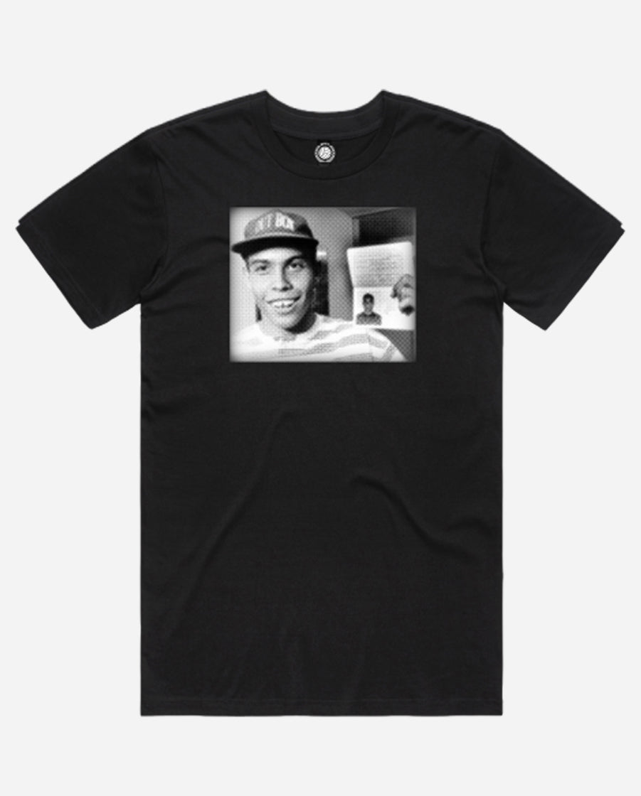 This shirt captures a quiet moment in history — a young Brazilian about to leave for Europe, passport in hand, eyes forward.