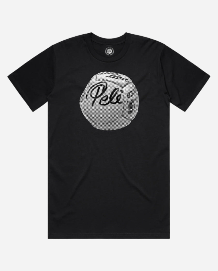This shirt captures that legacy in its quietest form: a photo of a ball, signed “With love, Pelé.”